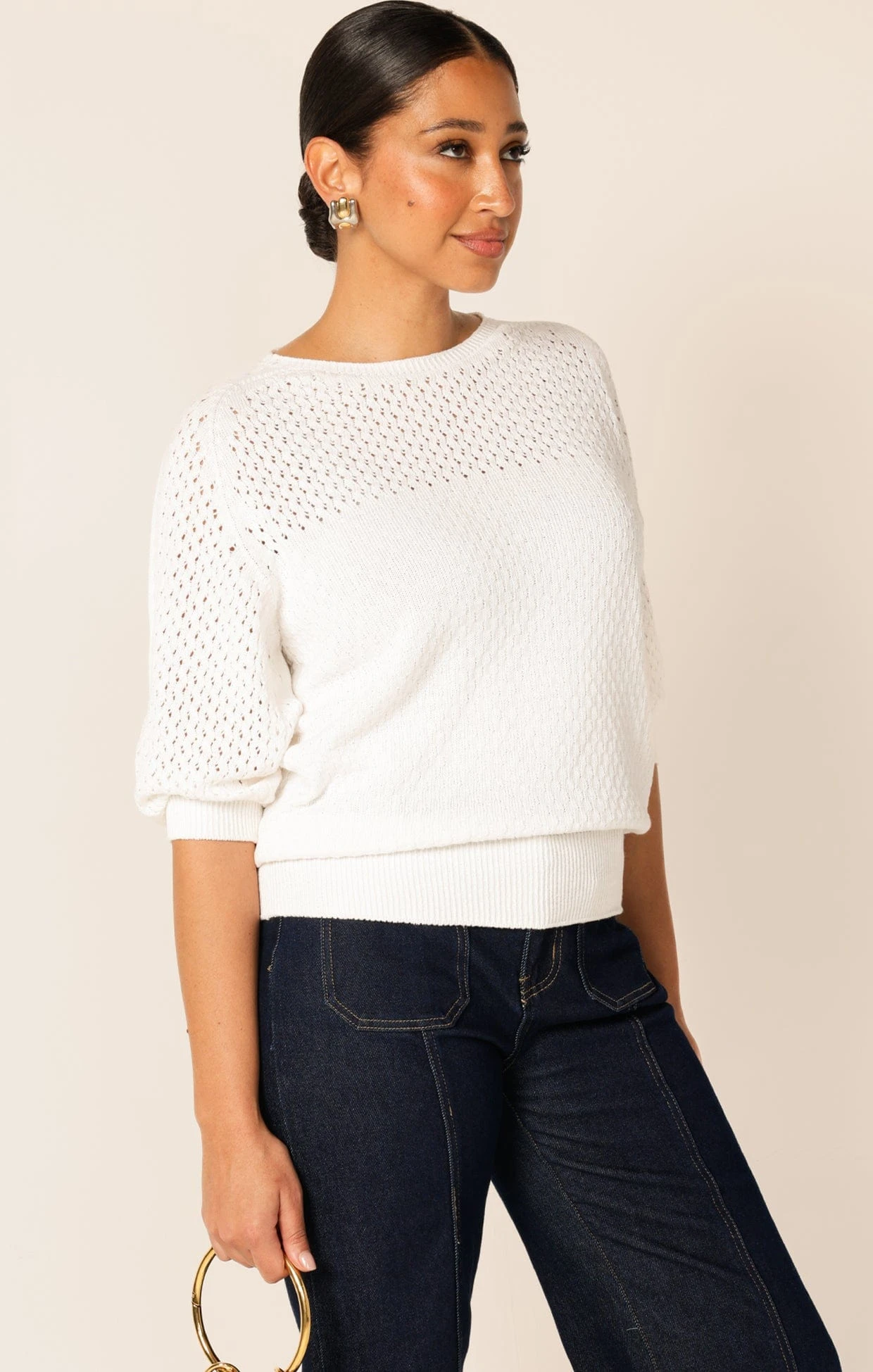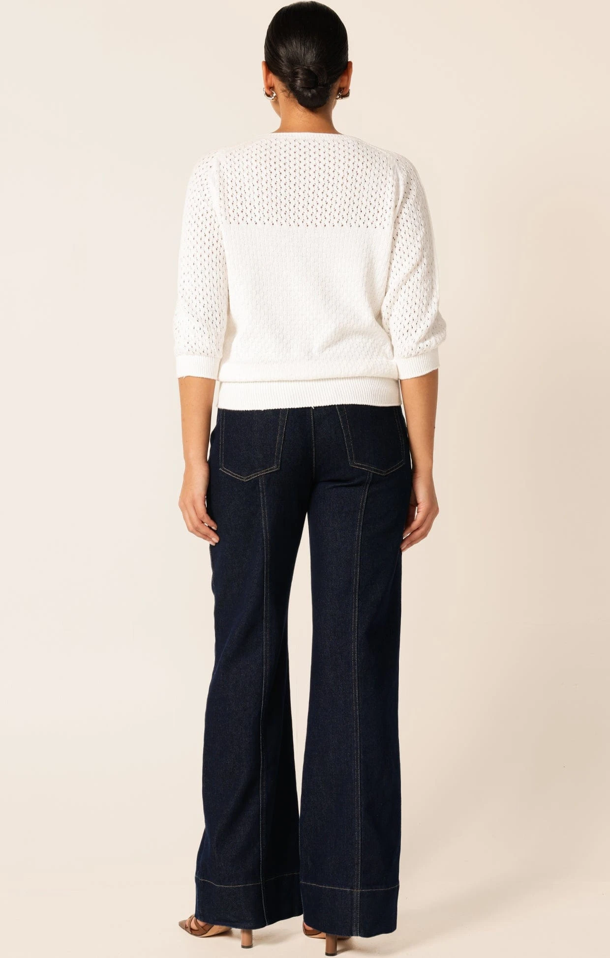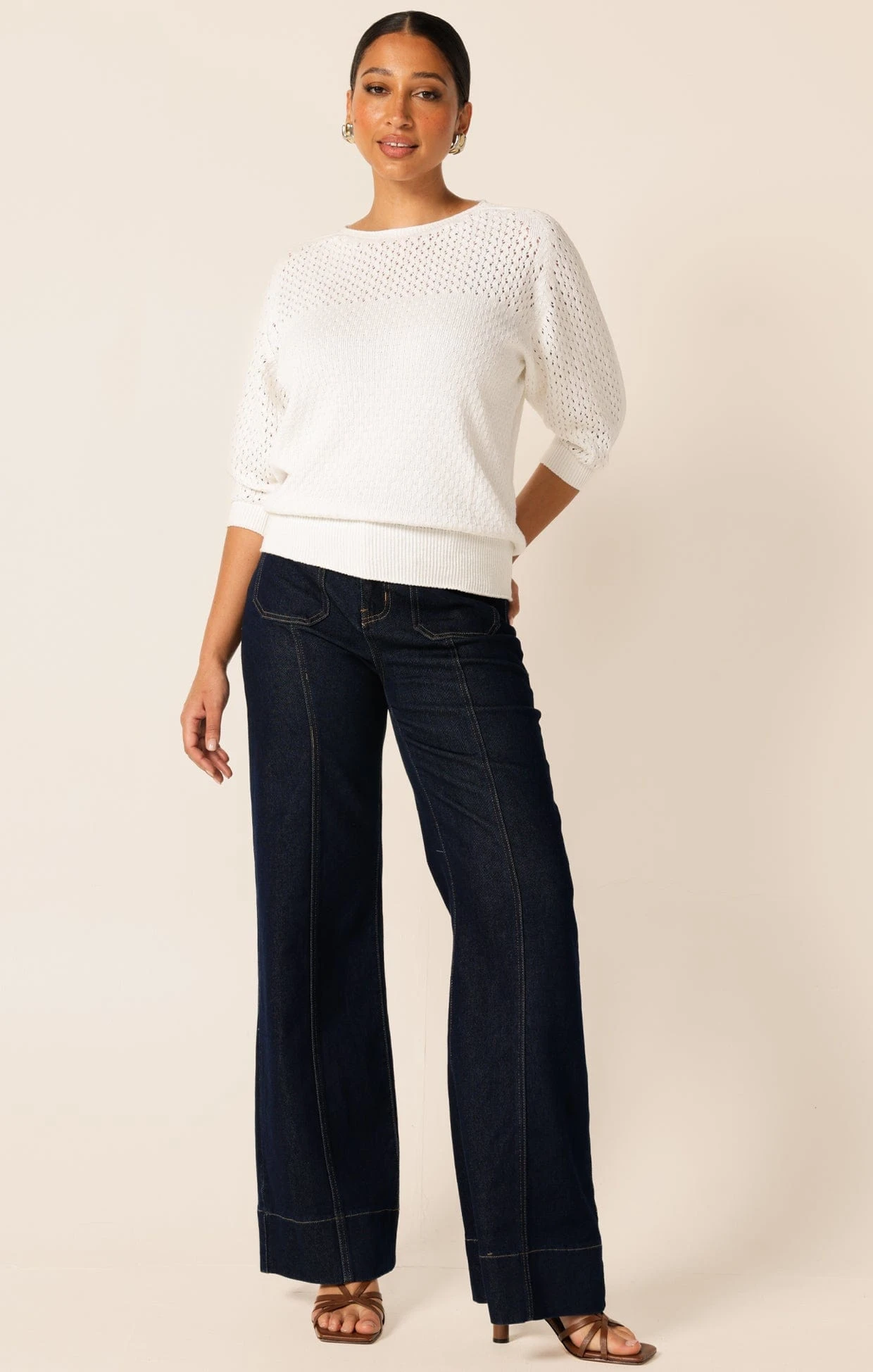 Made in Australia, the 3/4 Sleeve Ripple Knit Top features a soft cotton-blend stretch knit with a contrast Pointelle neckline and a flattering ribbed waist. With its longer sleeves and easy pull-over style, this versatile piece is perfect for effortless layering.