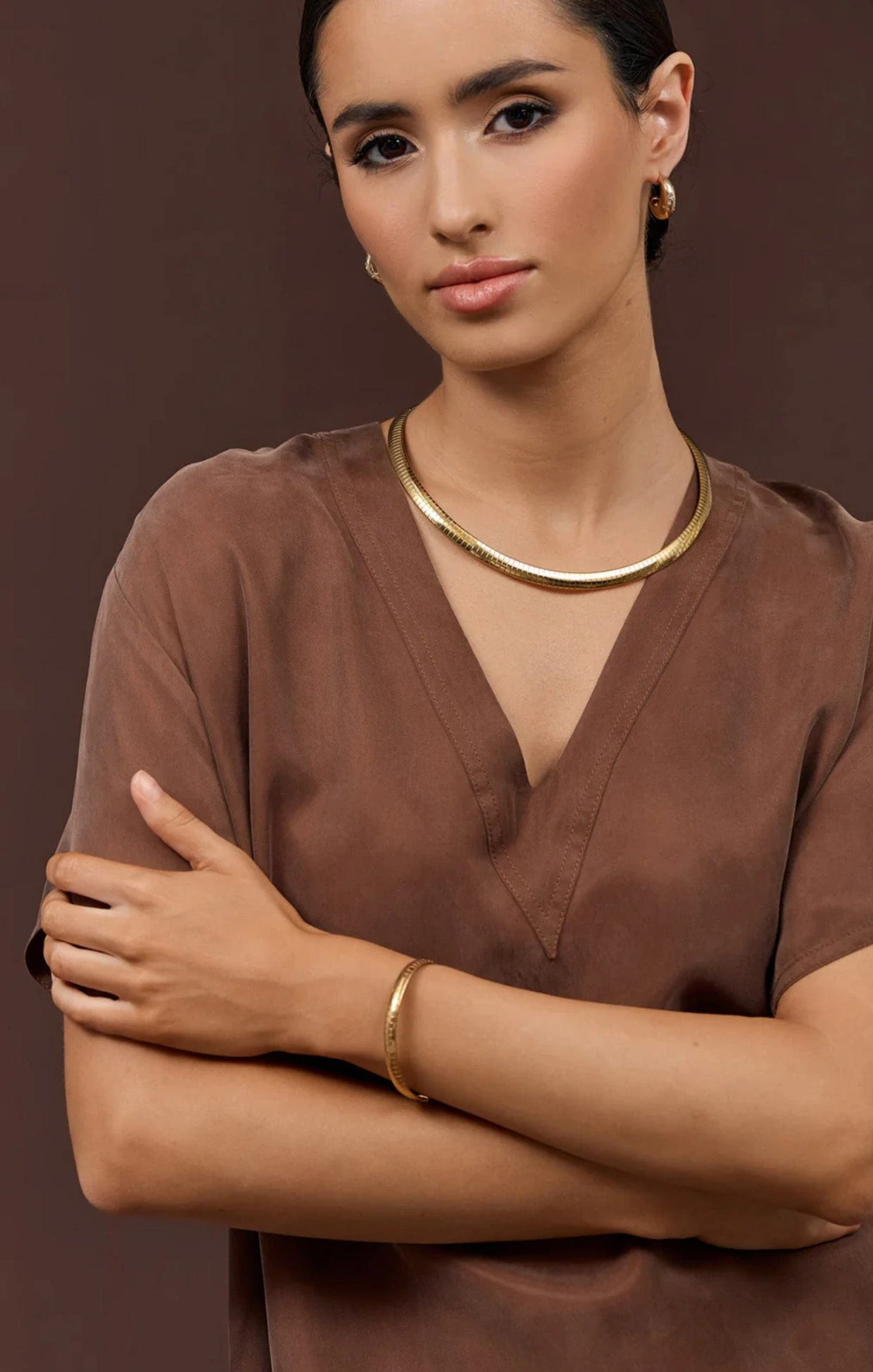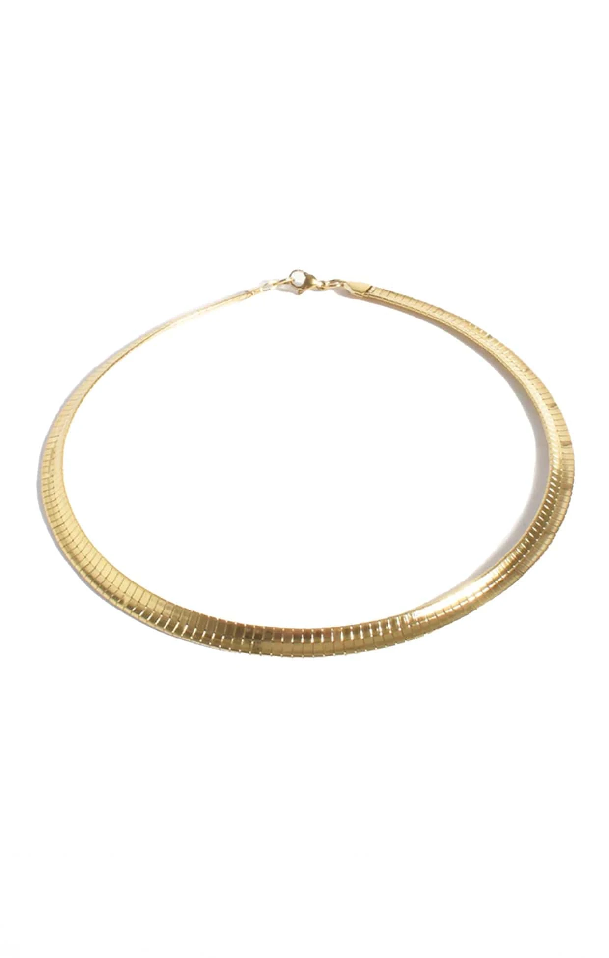 Sleek and timeless, the Flat Snake Chain Necklace in Gold is a chic short-length design crafted from high-shine plated metal. Featuring a smooth, fluid silhouette and a secure parrot clip closure, it’s the perfect everyday statement piece.