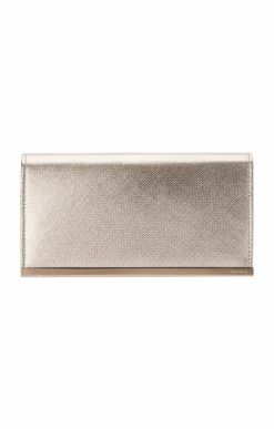 Elegant and understated, the Maddie Metallic Embossed Foldover Clutch is a timeless piece that’ll go with just about any evening look. Featuring a metallic textured vegan leather outer with a metal bar trim and a roomy interior for all of your event essentials. Pop on the removable shoulder chain to go hands-free on the dance floor.