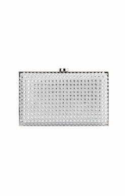 A dazzling accessory designed to elevate any event look. Adorned with hundreds of shimmering hotfix stones over a glittery textile, this stylish clutch comfortably fits all your essentials—including a large smartphone. Featuring a custom Olga Berg top lock, silver-tone hardware, and a removable shoulder chain for versatile wear.