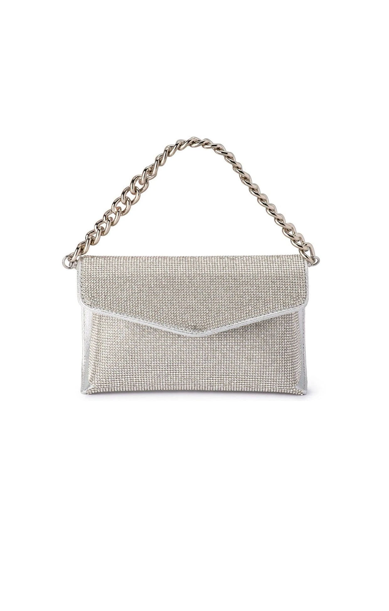 The Nico Crystal Envelope Clutch by Olga Berg evokes timeless glamour with its textured crystal finish. Carry it elegantly in hand, wear it with the shoulder chain for a hands-free look, or style it by the top handle for added sophistication. Perfect for weddings and events.