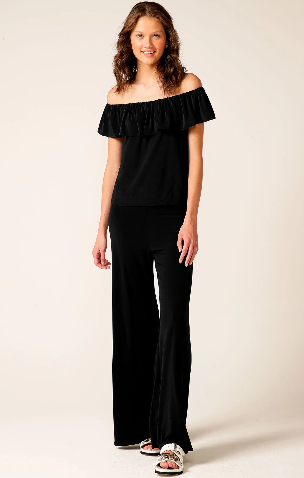 The Off the Shoulder Frill Top is a versatile piece crafted from a premium stretch jersey fabric, perfect for events or weekend wear. Made in Australia, this loose-fit top features a frill detail neckline and can be worn off the shoulder or on, offering a chic and effortless look.