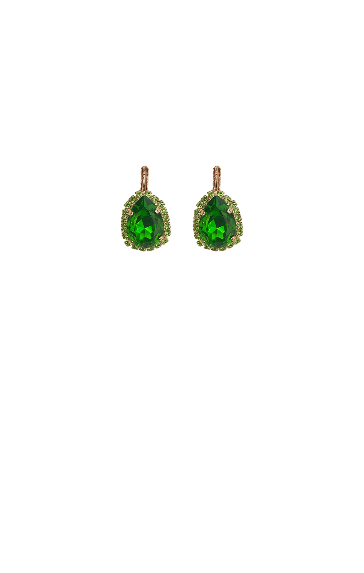 Elegant and timeless, the Paris Earring in Sapphire by Mariana showcases a classic teardrop design crafted with dazzling Czech and Austrian crystals. A striking emerald-toned teardrop is framed by a halo of smaller crystals, creating brilliant sparkle from every angle. Set in luxurious 18-carat rose gold plating and finished with a 3cm drop and refined French hook closure, these earrings are the perfect finishing touch for eveningwear or special occasions.