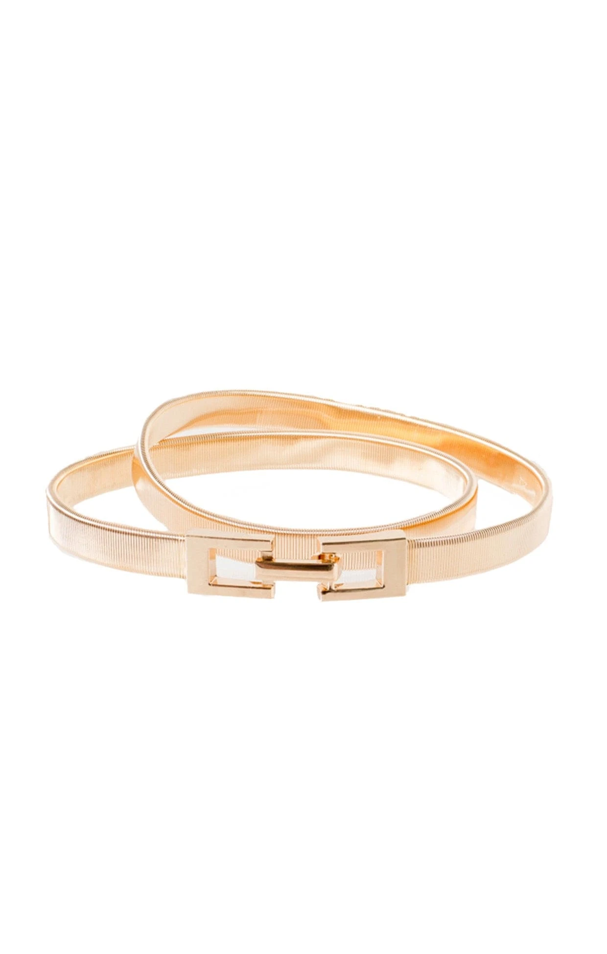 Style up your outfit with the slimline slinky belt in gold. This belt stretches around your waist to give a streamlined look with lots of comfort. Wear it to work, use it to dress up outfits for events and wear it with your denim on the weekends, its versatility is endless. The hook clasp is easy to take on and off and sits beautifully when on the body
